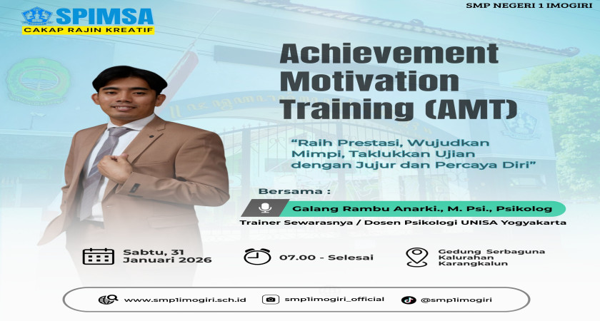 Siswa kelas IX SMP Negeri 1 Imogiri baru saja mengikuti kegiatan AMT sebagai bekal persiapan mental menghadapi TKA. Simak kegiatannya melalui tautan di bawah ini: